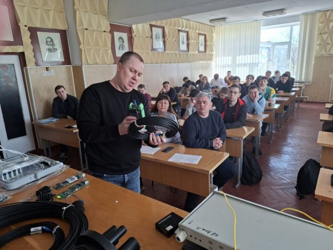 Під час тренінгу технічний директор компанії Дмитро Олексійович Костенко ознайомив студентів з історією розвитку комп’ютерних мереж у місті Первомайськ, продемонстрував еволюцію обладнання – від перших рішень до сучасних високотехнологічних систем. Особливу увагу було приділено впровадженню технології GPON (Gigabit Passive Optical Network), яка з 2014–2015 років активно використовується у приватному секторі міста.